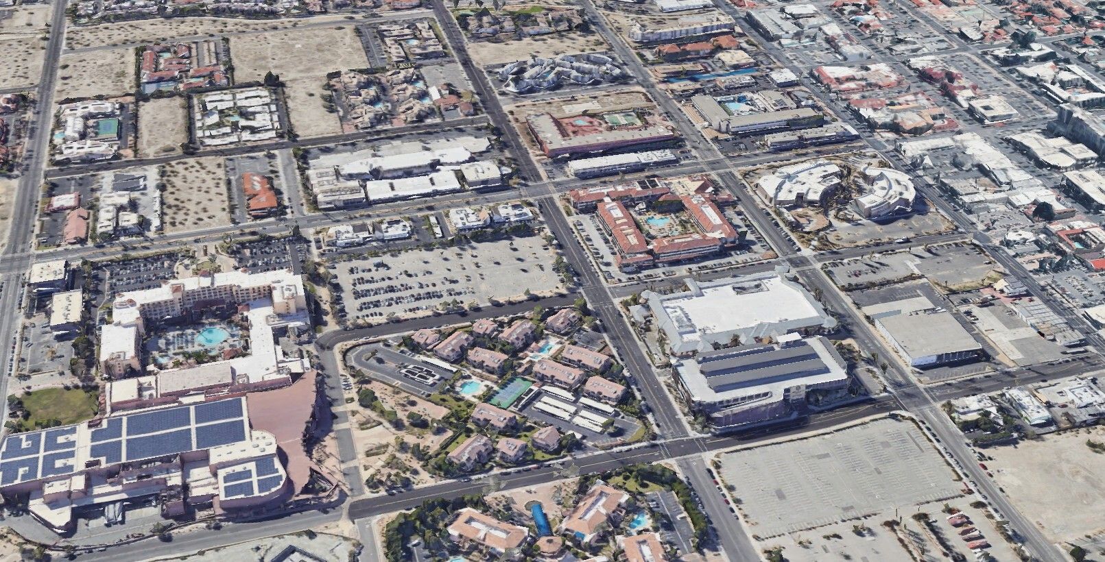 Palm Springs leaders want to improve the connection between the convention center (bottom left) and downtown’s main streets.